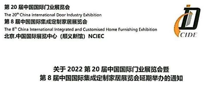 關于2022北京門業與定制家居展CIDE延期舉辦的通知